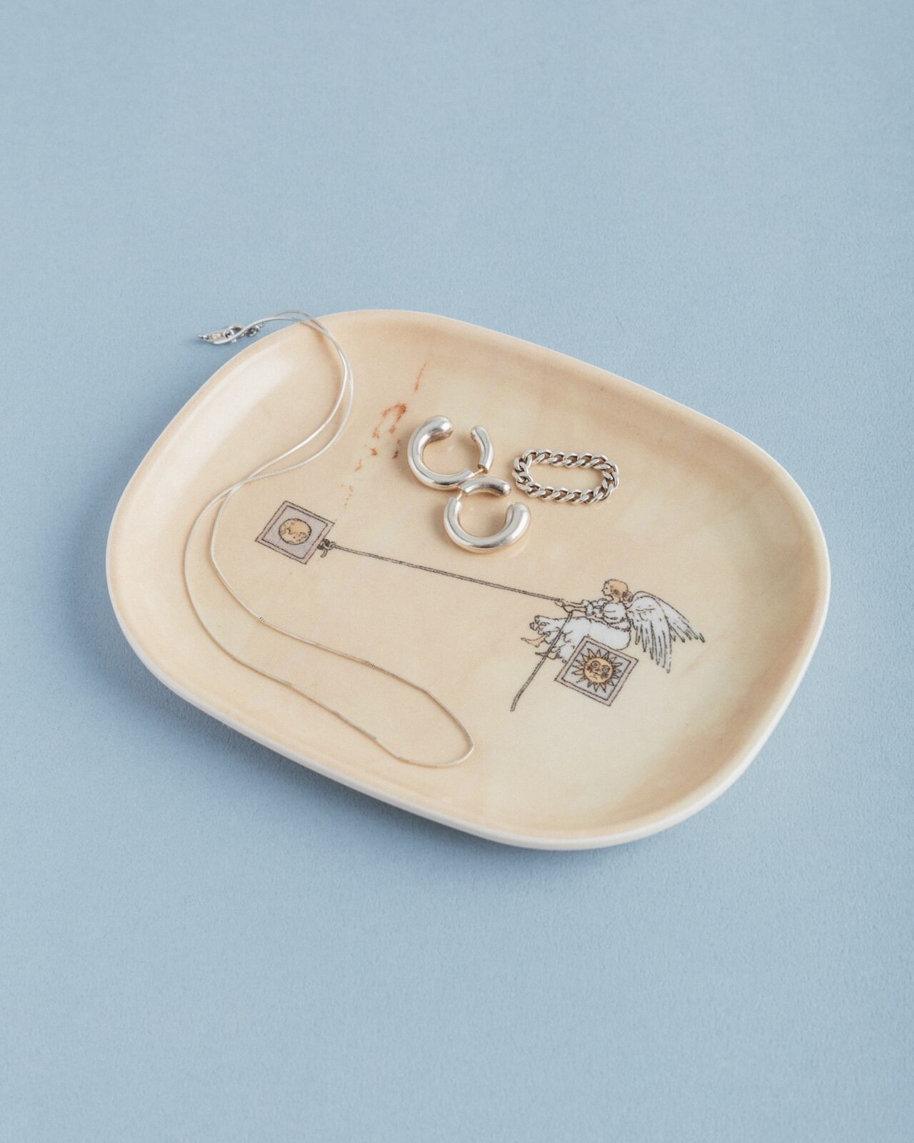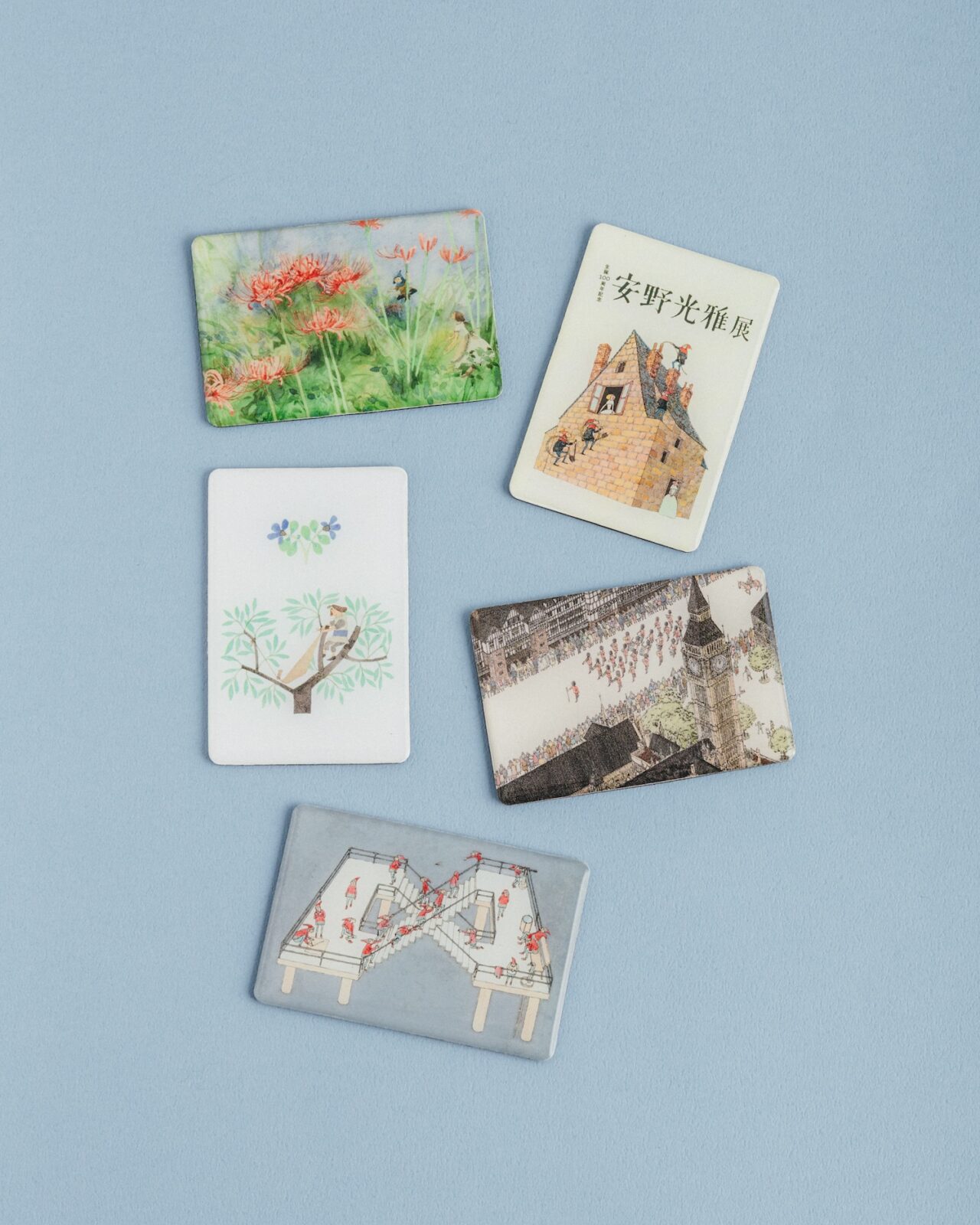 『ふしぎなえ』『さかさま』『天動説の絵本』のちいさなトレイ。生地を樹脂で丁寧に圧着した、丈夫で美しい一品です。食卓やデスクまわりに彩りを添える、特別な一枚です。『さかさま』『天動説の絵本』のグッズは、トレイとポストカードのみです。