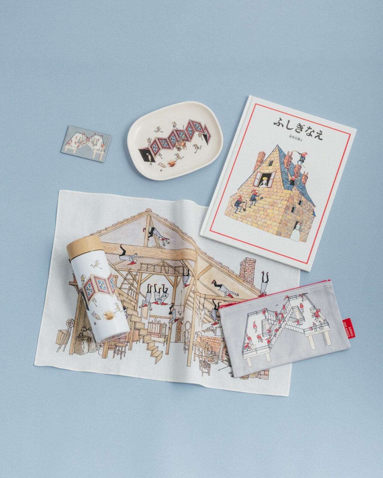 絵本『ふしぎなえ』『旅の絵本』『おおきな ものの すきな おうさま』『天動説の絵本』といった代表作から厳選した原画約130点をはじめ、すべての展示作品とその解説を収録。巻末には「先生へ」と題し、安野作品を愛する6組のクリエイターにインタビューした模様を掲載しました。