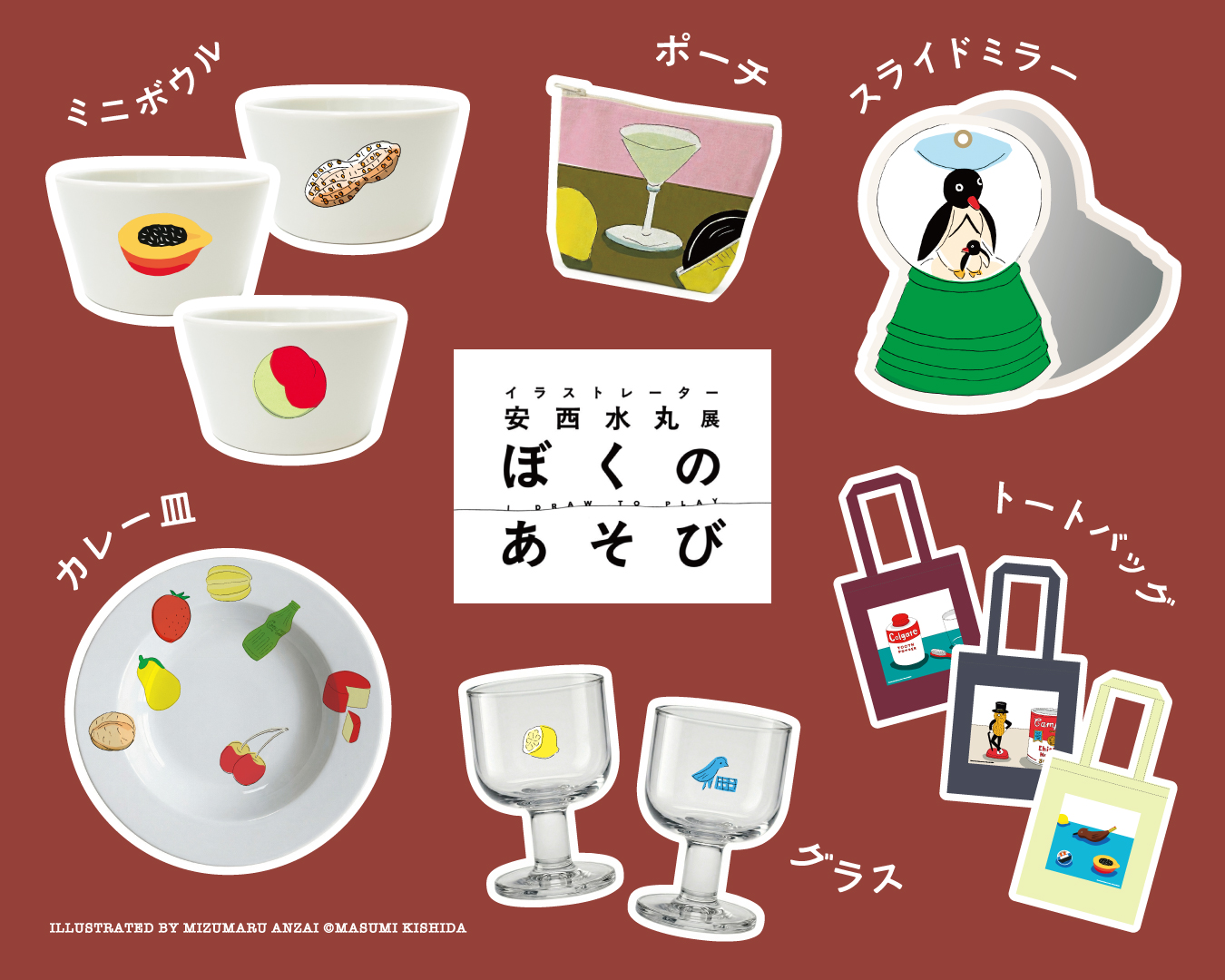 安西のポップで多彩な色調が特徴なイラストをあしらったオリジナルグッズを販売します。