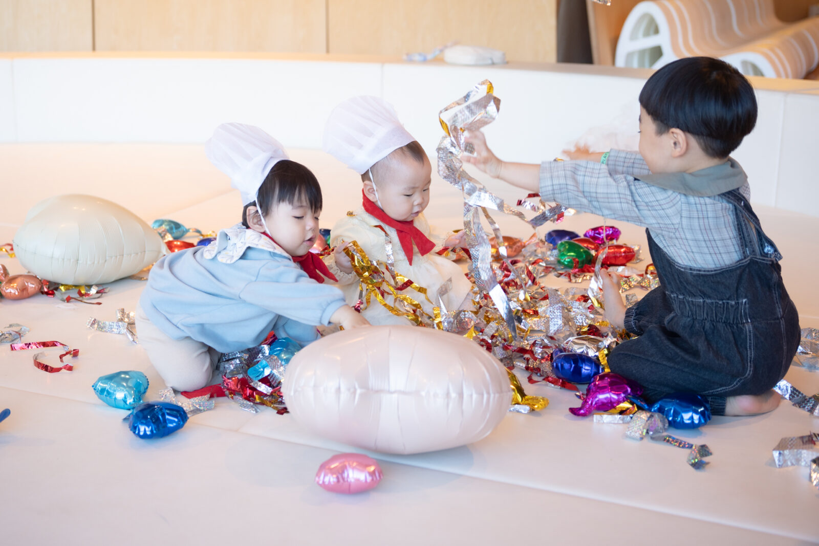 バレンタイン期間中は〈小さなお皿〉に、ハートがたくさん登場します。風船を目で追いかけたり、フィルムテープの音や感触を楽しんだり!カラフルな世界を体験しよう。