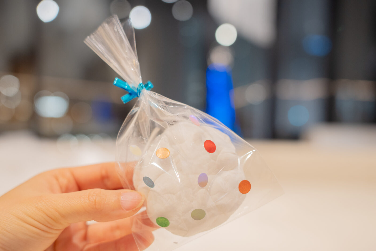 青いスカーフを身につけ、白色の粘土でマシュマロをつくろう!バレンタインと両方参加して2つ並べるのもおすすめ。