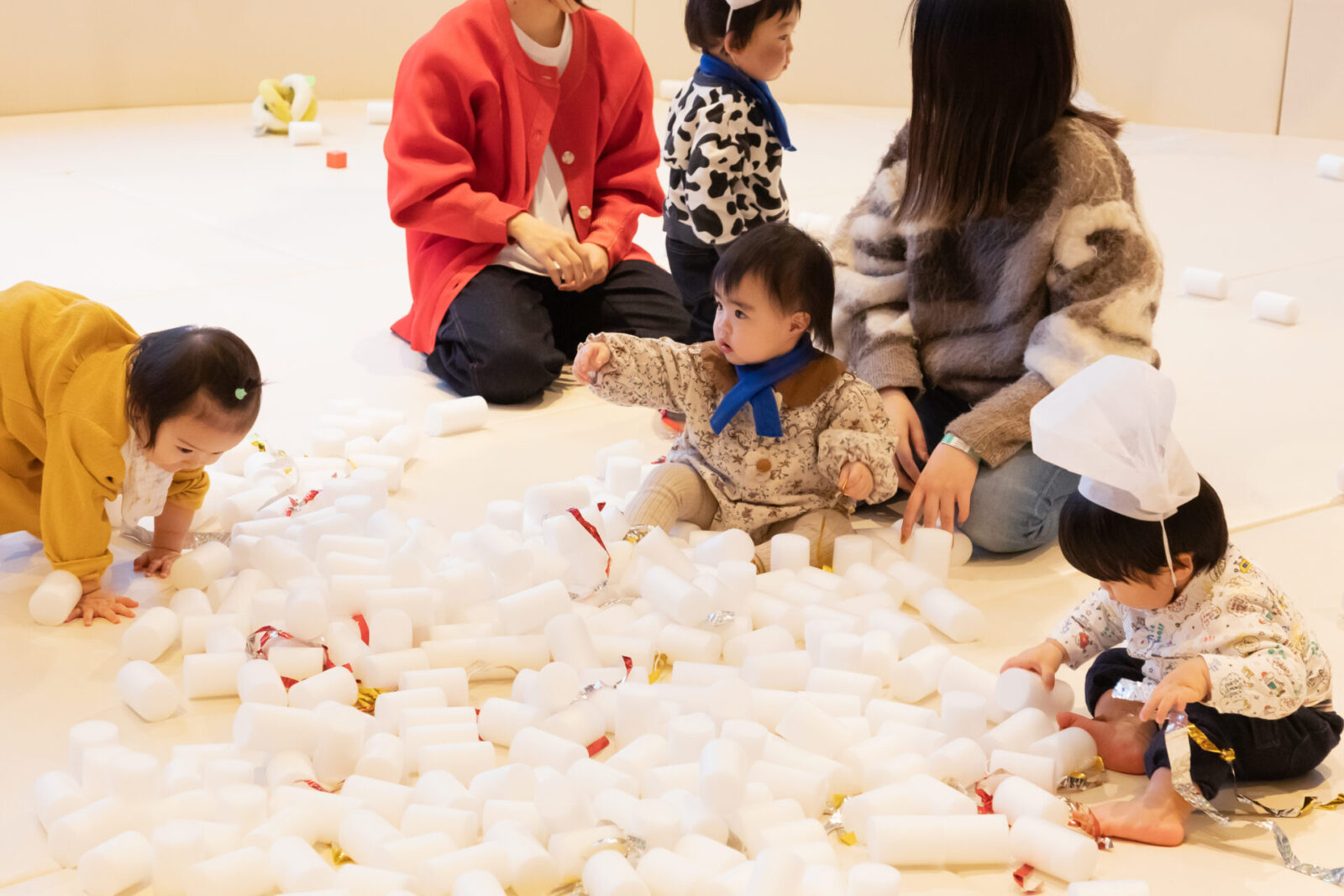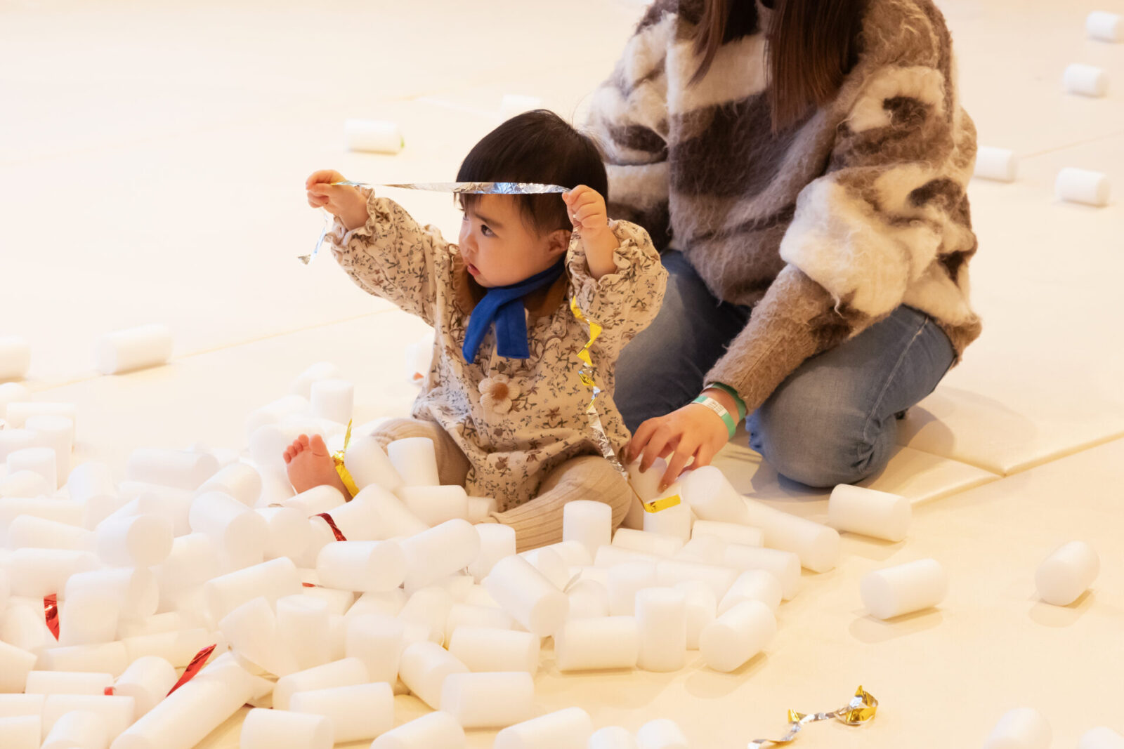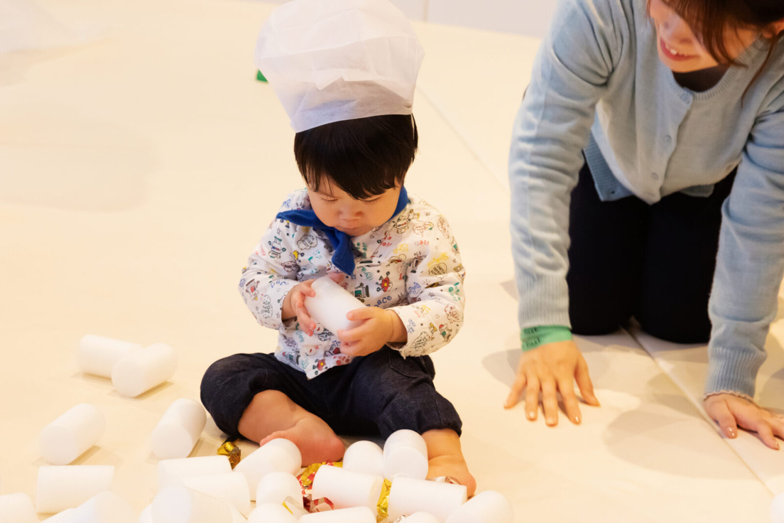 ホワイトデー期間は、「ミナフォームマルマル®」が登場します。白くて柔らかいので、握ってみたり投げてみたり!親子で一緒に触感遊びを楽しもう。