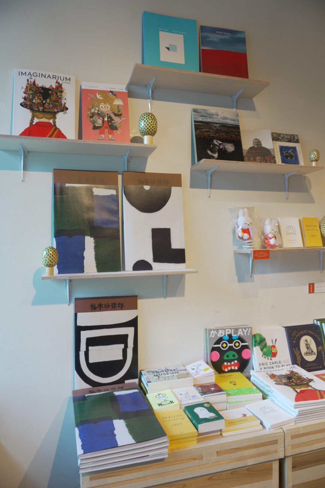 展覧会図録からポケットブックまで、自社で制作した本やグッズを中心に並べています。