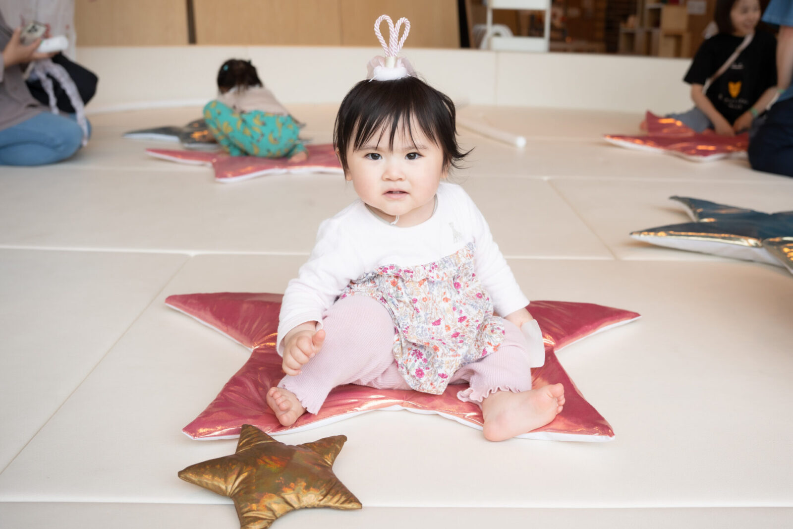大きな星に乗ったり大人に引っ張ってもらおう。織姫と彦星になりきって星の世界を旅します。