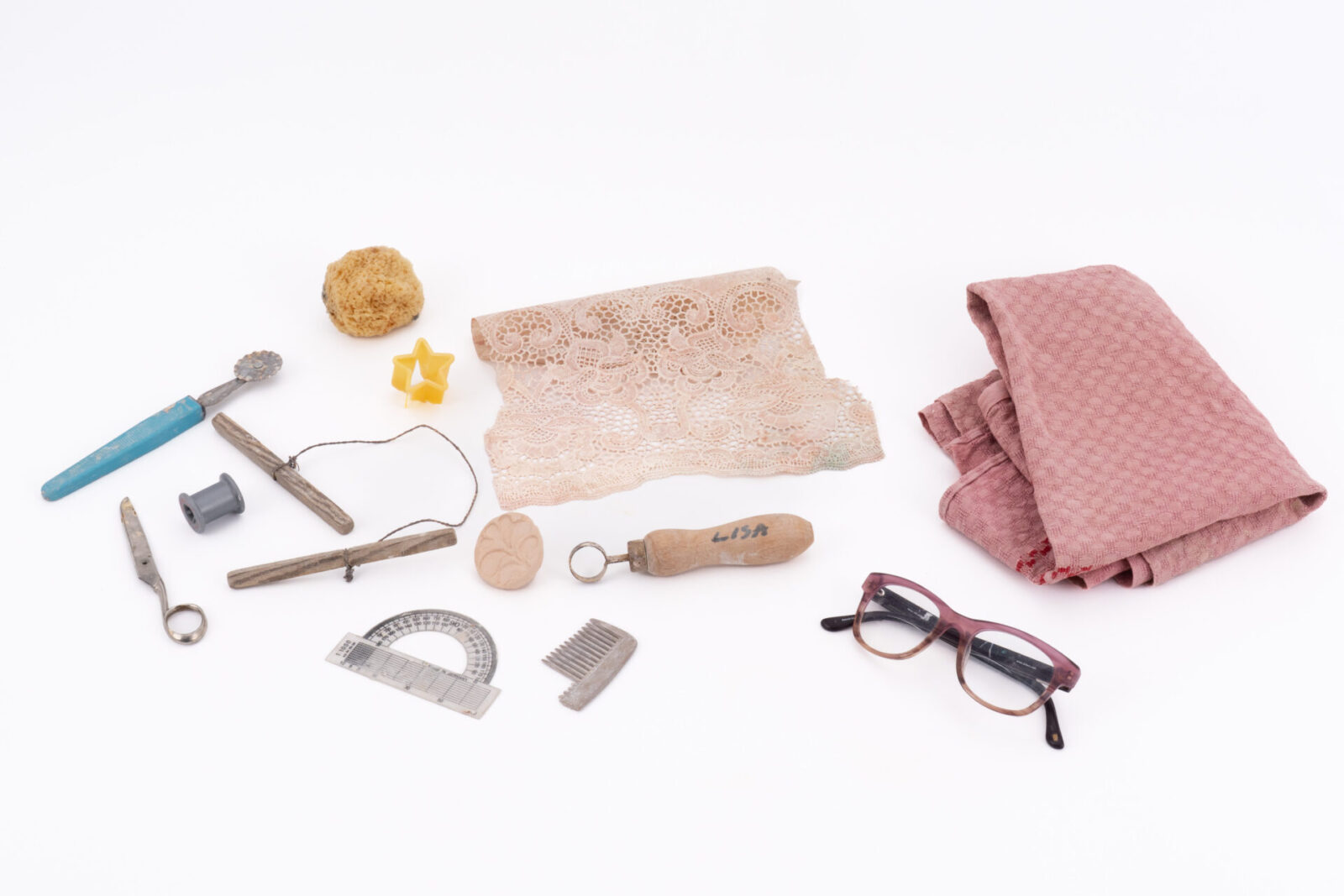 第1部では、リサが実際に使用していた道具類やスケッチ、制作風景の映像、そして出来上がったプロダクトを通して生産過程を「見る」「知る」ことができます。