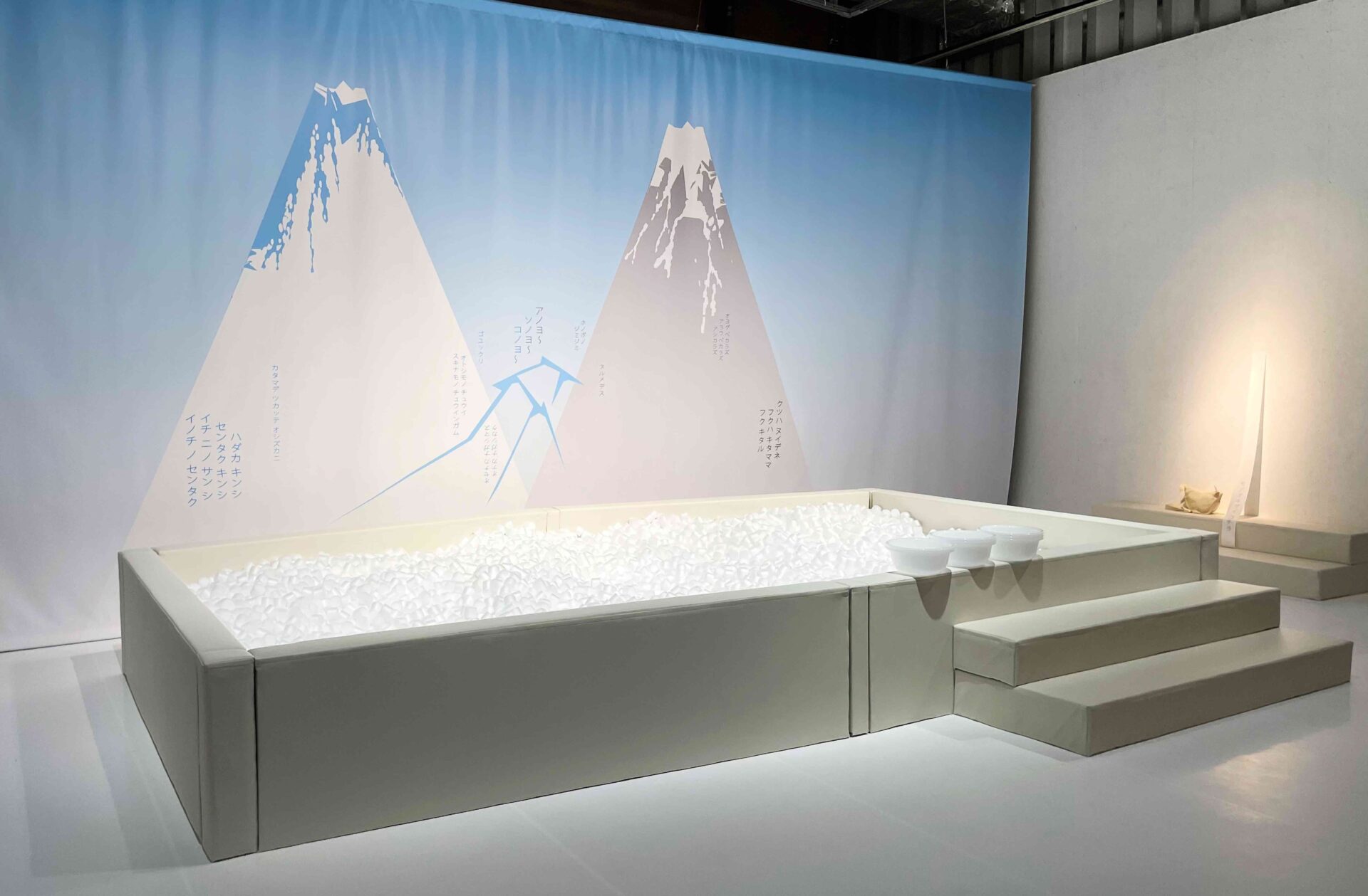 「ぬくぬくと ふとって けいとの たまが よつかどを まがる」。谷川俊太郎の詩「けいとのたま」に息子・谷川賢作がメロディをつけ、DiVaが演奏する軽快な曲をインスタレーション展示します。