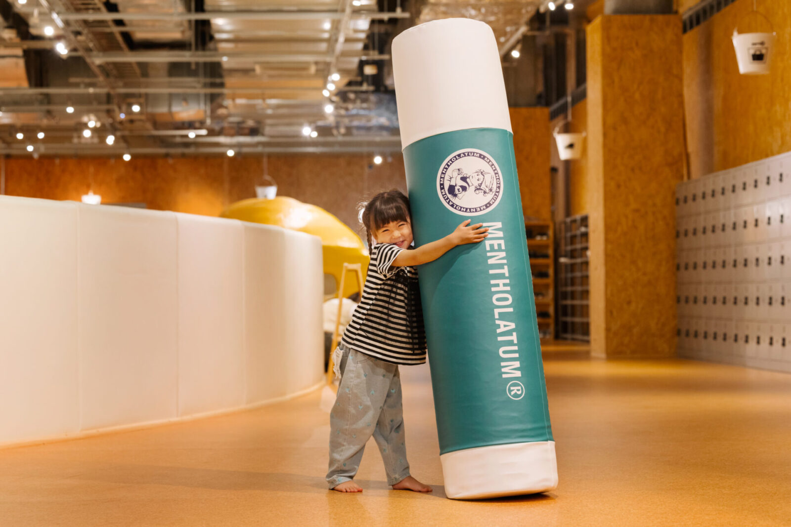 常設あそび「大メンソレータムリップ」「メンソレータムリップトンネル」「リトルナースになる」「ころころリップ」