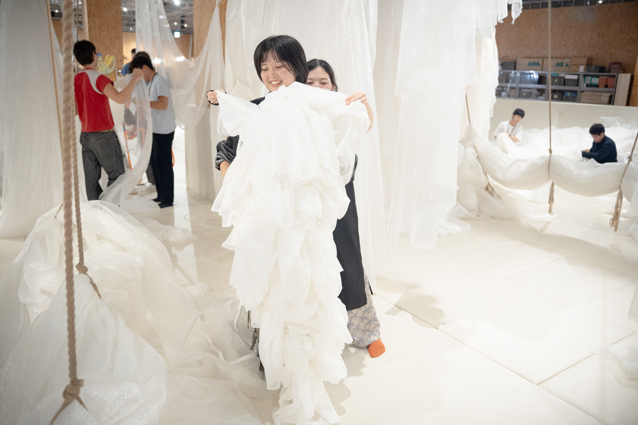 2026年冬、〈大きなお皿〉に登場予定なのは「ゴム紐と布」を使った大型遊具。