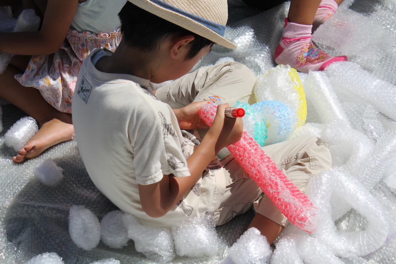 元美大生3~5名で立ち上げ、不定期で作品の制作やワークショップの企画運営を行っています。 子どもの純粋無垢な創作意欲や、大人が秘めるちょっとした遊び心を応援し、プチプチ®の可能性をどんどん広げていきます!