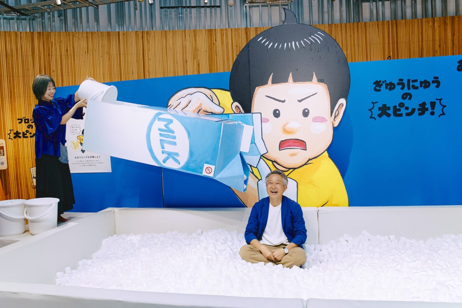 鈴木 「かんがえるピンチ」が続いたので、ちょっと疲れた頭をすっきりさせましょう。もう『大ピンチずかん』とはまったく関係ないです(笑)。理想としては、大ピンチのことで一緒に盛り上がった仲間として、最後に牛乳風呂で交流してもらえたらいいなというストーリーが僕の中にはあるのですが、ただただ純粋にここで遊んだら面白いだろうなと思って作りました。