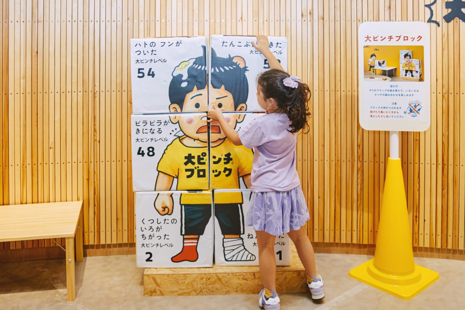 草刈 話題の「大ピンチ展!」がPLAY! MUSEUMにやってきました。本展は、鈴木のりたけさんの『大ピンチずかん』という大ベストセラーを、新しい形で楽しんでいただく展覧会です。ただ、 いわゆる“展覧会”というものが、作品を見て何かを感じる場だとするならば、これは展覧会とは言えないのかもしれません。なぜなら「大ピンチ展!」は、皆さんが会場で遊び、体験するものだからです。
