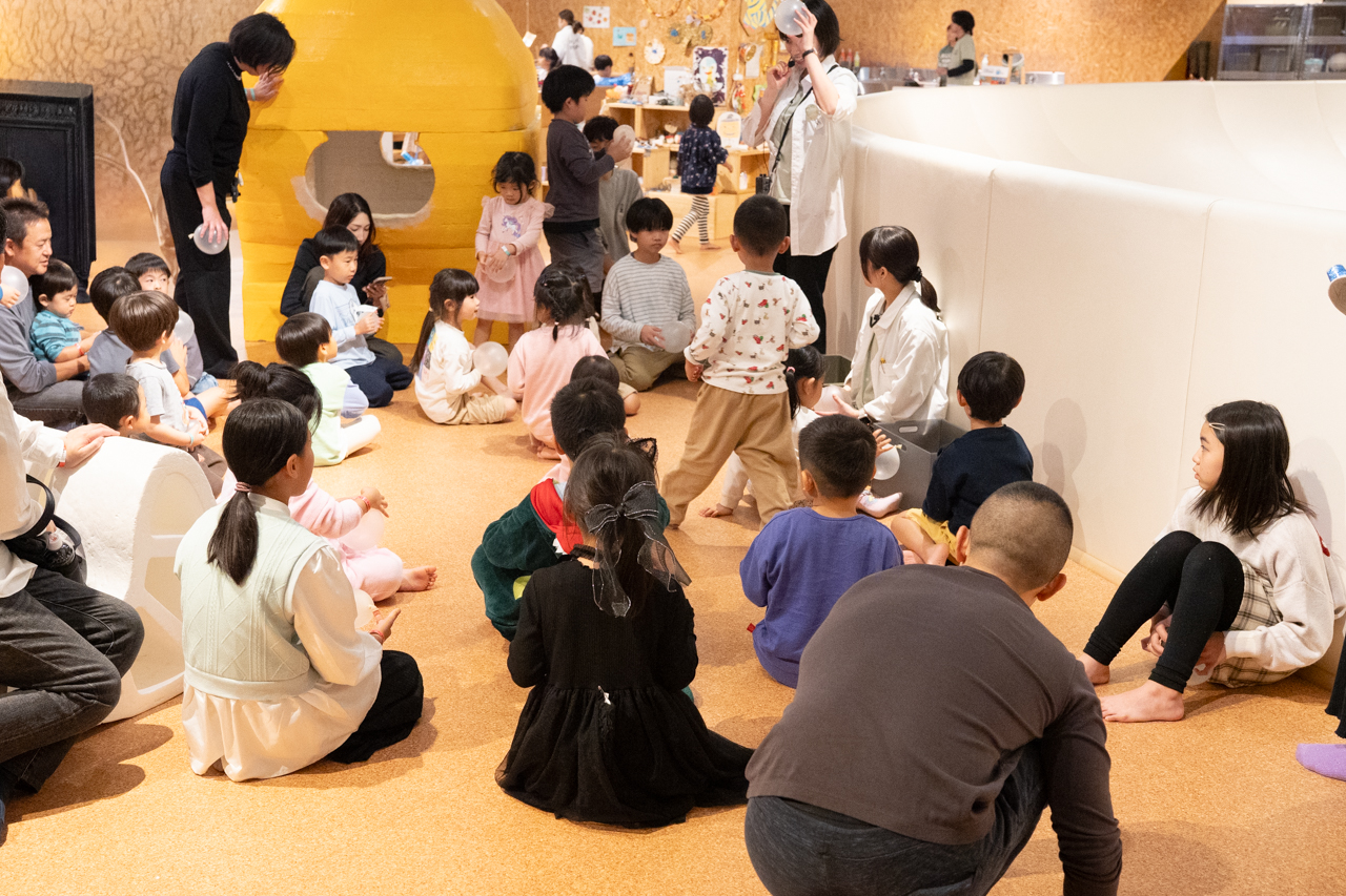 PARK館内に隠された鏡もちを探したり、鏡もちを頭の上に乗せて落とさないように歩けるか挑戦してみたり!家族みんなで体験してみてね。