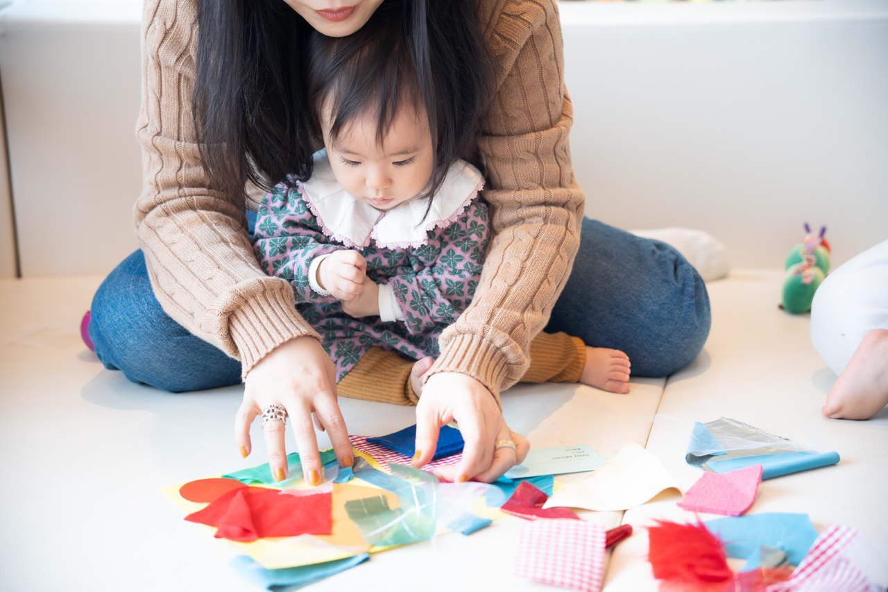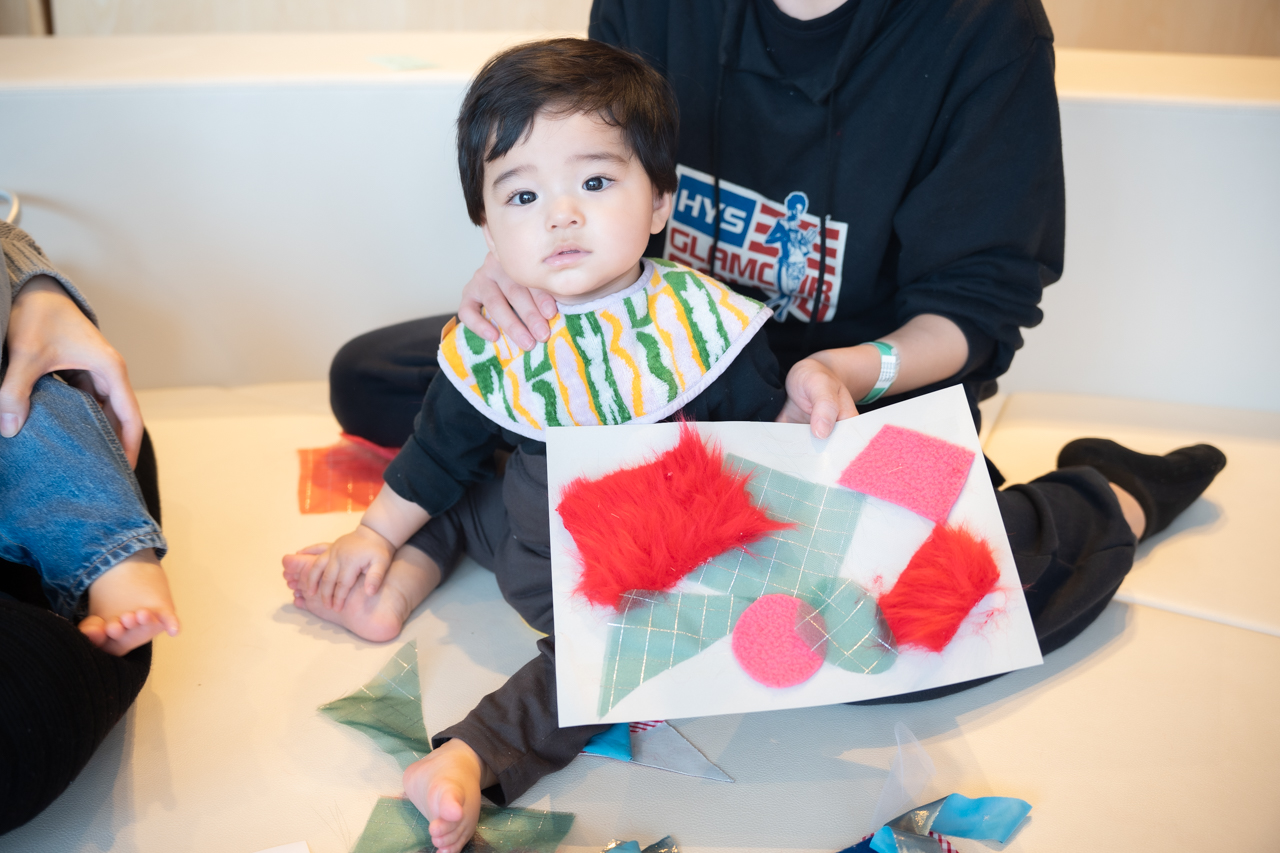 テーマに合った色々なものをつかって、世界に一つだけの作品を作る「ベビーアーティスト」。新しいテーマは「布」。