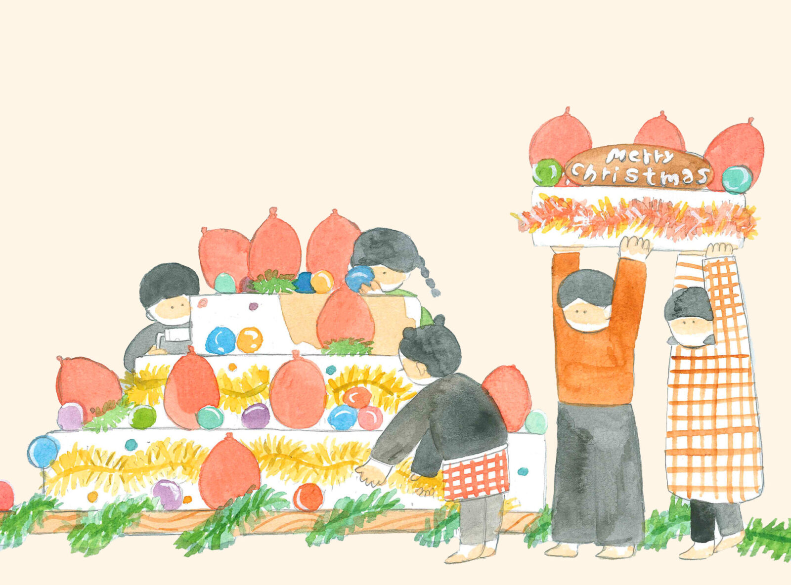 みんなで横幅2mほどの大きなクリスマスケーキのおみこしをつくろう!完成したらおみこしを担いでPLAY! PARKやGREEN SPRINGS内をパレードします。